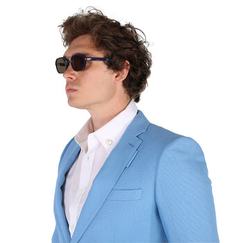 Montblanc Sunglasses. Series number: MB0264S. Color code: 003. Shape: Square. Lens Width: 52 mm. Lens Bridge: 24 mm. Arm Length: 145 mm. 100% UV protection. Frame Material: Plastic. Frame Color: Blue. Lenses Type: Gyre. Rim Style: Full-Rim. UPC/EAN code: 889652424675. Montblanc Gyre Square Men's Sunglasses MB0264S 003 52.