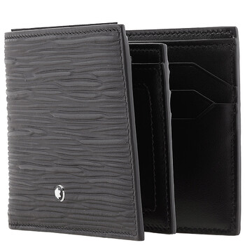 Montblanc Wallets. Meisterstuck series. SKU: 130926. Barcode: 4062037108049. Color: Black. Size: 4.5" x 0.2" x 3.5". Montblanc Meisterstuck 4810 Leather 6CC Wallet 130926. This wallet, featuring a bark tree motif on its leather, is designed to hold up to six credit cards, includes two compartments for banknotes, an additional pocket, and two view pockets for easy visibility of IDs and driver's licenses.