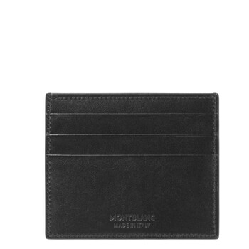 MontBlanc Wallets. SKU: 198324. Color: Black. Size: 10 x 8 cm. Montblanc Meisterstuck 6CC Leather Card Holder. The cardholder, crafted from smooth leather and lined with black fabric, features six pockets for credit or business cards, an additional pocket for folded notes or receipts, and is elegantly finished with the Montblanc emblem.