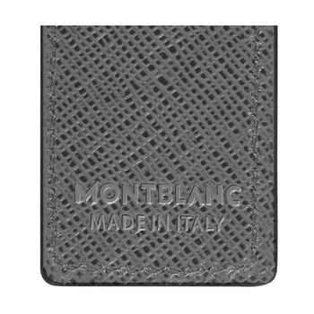 Montblanc Men's Pouch. SKU: 131742. Color: Grey. Size: 30 × 18 × 160 mm. Montblanc Sartorial 1-Pen Pouch. This pen pouch, crafted from full-grain forged iron leather, offers a tactile allure, with an overlapping envelope-inspired silhouette that pays tribute to the written word, featuring an emblem design on the front. Material: Calf-skin leather.
