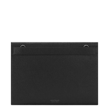 Montblanc Pouch. SKU: 130314. Color: Black. Size: 290 × 30 × 210 mm. Montblanc Sartorial Envelope Leather Pouch. Featuring a classic envelope design, this pouch is perfect for storing various business essentials. The band on the back allows it to be attached to larger bags in the collection, while two dedicated pen pockets securely hold writing instruments. Material: Calf-skin leather, Lining: Coated canvas.