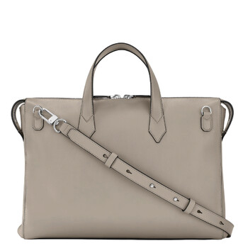 Montblanc Briefcase. SKU: 131234. Color: Grey. Size: 370 × 55 × 260 mm. Montblanc Zipper Leather Briefcase. This slim briefcase is designed to hold a range of personal belongings, with A4 documents fitting comfortably in the main compartment. Additional items can be stored in the open pocket and zipped pockets on both the exterior and interior. It also includes two loops for storing writing instruments, while nib-shaped detailing adorns the handles and zip pulls. Material: shaped detailing features across handles and zip pulls. Material: Calf-skin leather, Lining: Coated fabric.