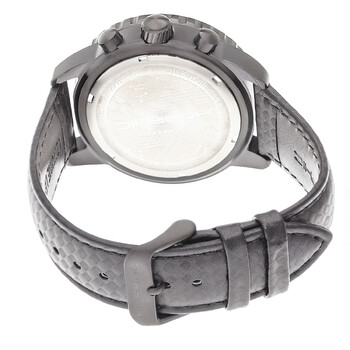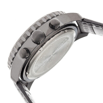 Gunmetal stainless steel case with a grey leather strap. Uni-directional rotating black bezel. Black dial with silver-tone hands and index hour markers. Minute markers around the outer rim. Dial Type: Analog. Luminescent hands. Date display at the 4 o'clock position. Chronograph - three sub-dials displaying: 60 second, 30 minute and date. Quartz movement. Scratch resistant mineral crystal. Solid case back. Round case shape, case size: 45 mm, case thickness: 14 mm. Band width: 22 mm. Buckle clasp. Water resistant at 100 meters / 330 feet. Functions: chronograph, date, hour, minute, second. Sport watch style. Item Variations: MPH5106. Morphic M51 Series Chronograph Black Dial Men's Watch 5106.