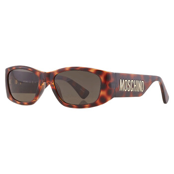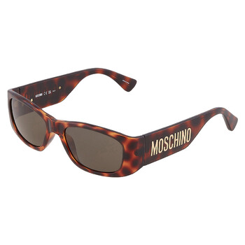 Moschino Sunglasses. Series number: MOS145/S. Color code: 005L/70. Shape: Rectangular. Lens Width: 55 mm. Lens Bridge: 18 mm. Arm Length: 135 mm. 100% UV protection. Non-Polarized. Frame Material: Plastic. Frame Color: Havana. Lenses Type: Brown. Rim Style: Full-Rim. UPC/EAN code: 716736764344. Moschino Brown Rectangular Ladies Sunglasses MOS145/S 005L/70 55.