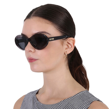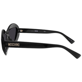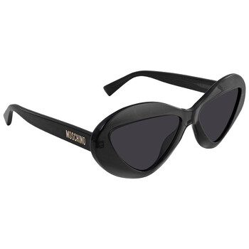 Moschino Sunglasses. Series number: MOS076/S. Color code: 0KB7/IR. Shape: Irregular. Lens Width: 55 mm. Lens Bridge: 16 mm. Arm Length: 140 mm. 100% UV protection. Frame Material: Plastic. Frame Color: Black. Lenses Type: Dark Grey. Rim Style: Full-Rim. UPC/EAN code: 716736284651. Moschino Dark Grey Irregular Ladies Sunglasses MOS076/S 0KB7/IR 55.