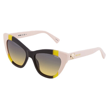 Moschino Sunglasses. Series number: MOS122/S. Color code: 071C/JE. Shape: Cat Eye. Lens Width: 53 mm. Lens Bridge: 17 mm. Arm Length: 140 mm. 100% UV protection. Frame Material: Acetate. Frame Color: Black;Yellow;Pink. Lenses Type: Grey Shaded Green. Rim Style: Full-Rim. UPC/EAN code: 716736690667. Moschino Grey Shaded Green Cat Eye Ladies Sunglasses MOS122/S 071C/JE 53.