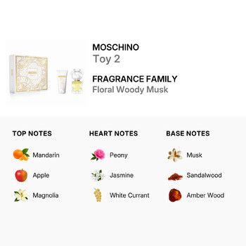 Each gift set includes a 30ml Eau de Parfum and a 50ml Body Lotion, ensuring that you can enjoy the delightful aroma of Toy 2 both as a fragrance and as a luxurious skincare experience. With its unique blend of notes and exquisite presentation, the Moschino Ladies Toy 2 Gift Set is more than just a fragrance; it is a statement of style and sophistication.