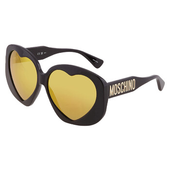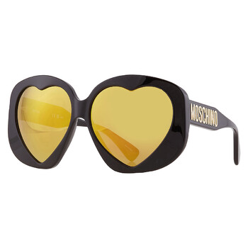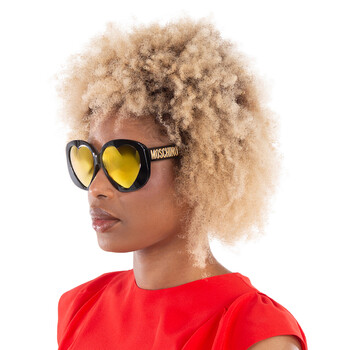Moschino Sunglasses. Series number: MOS152/S. Color code: 0807/CU. Shape: Irregular. Lens Width: 61 mm. Lens Bridge: 14 mm. Arm Length: 135 mm. 100% UV protection. Non-Polarized. Frame Material: Plastic. Frame Color: Black. Lenses Type: Multilayer Yellow. Rim Style: Full-Rim. UPC/EAN code: 716736860763. Moschino Multilayer Yellow Irregular Ladies Sunglasses MOS152/S 0807/CU 61.