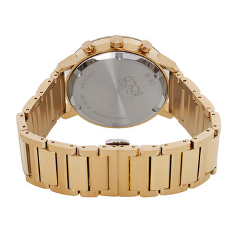 Yellow gold IP stainless steel case and bracelet. Fixed yellow gold IP stainless steel bezel. Gold dial with gold-tone hands and index hour markers. Movado dot appears at the 12 o'clock position. Dial Type: Analog. Date display at the 4 o'clock position. Three sub-dials displaying: 60 second, 30 minute and day. Quartz movement. Scratch resistant K1 crystal. Pull / push crown. Solid case back. Round case shape, case size: 42 mm. Deployment clasp. Water resistant at 30 meters / 100 feet. Functions: chronograph, date, day, hour, minute, second. Bold Evolution Series. Sport watch style. Watch label: Swiss Made. Movado Bold Evolution Chronograph Quartz Gold Dial Men's Watch 3600811.