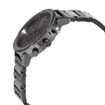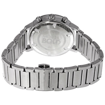 Grey ion-plated stainless steel case and bracelet. Fixed grey ion-plated bezel. Grey dial with grey hands and index hour markers. Dial Type: Analog. Date display at the 4 o'clock position. Chronograph - two sub-dials displaying: 60 second and 30 minute. Days of the week sub-dial. Quartz movement. Scratch resistant K1 mineral crystal. Pull / push crown. Solid case back. Round case shape. Case size: 42 mm. Bracelet width: 21 mm. Fold over clasp with a safety release. Water resistant at 30 meters / 100 feet. Functions: chronograph, date, hour, minute, second. Bold Evolution Series. Dress watch style. Watch label: Swiss Made. Movado BOLD Evolution Chronograph Quartz Grey Dial Men's Watch 3600685.