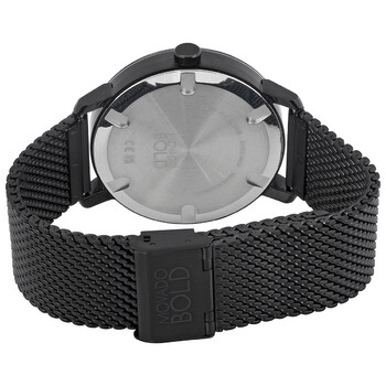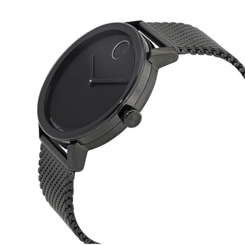 Blackip stainless steel case with a blackip stainless steel mesh bracelet. Fixed blackip stainless steel bezel. Black dial with black hands. Movado dot appears at the 12 o'clock position. Dial Type: Analog. Quartz movement. Scratch resistant K1 crystal. Pull / push crown. Solid case back. Round case shape, case size: 40 mm. Sliding clasp. Water resistant at 30 meters / 100 feet. Functions: hour, minute. Bold Evolution Series. Casual watch style. Watch label: Swiss Made. Movado Bold Evolution Quartz Black Dial Unisex Watch 3600792.