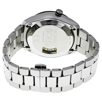 Stainless steel case with a stainless steel bracelet. Fixed bezel. Black dial with black-tone hands and index, led indicators hour markers. Minute markers around the outer rim. Dial Type: Analog. Quartz movement. Scratch resistant k1 mineral crystal. Case size: 44 mm. Round case shape. Deployment clasp. Water resistant at 50 meters / 165 feet. Functions: hour, minute, second, activity tracker. Additional Info: sync this to your smartphone via bluetooth connection to track activity, notifications and more! compatible with Android and iOs. engineered by HP. Sport watch style. Watch label: Swiss Made. Movado Bold Motion Stainless Steel Smart Watch 3660003.