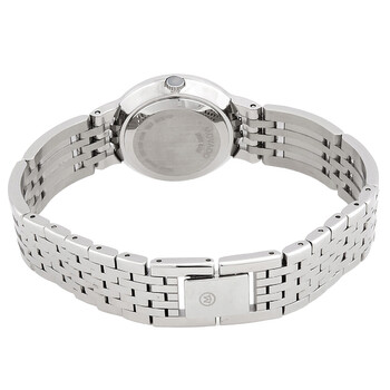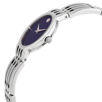 Silver-tone stainless steel case and bracelet. Fixed silver-tone stainless steel bezel. Blue dial with silver-tone hands. Dial Type: Analog. Quartz movement. Scratch resistant sapphire crystal. Pull / push crown. Solid case back. Round case shape, case size: 28mm. Buckle clasp. Water resistant at 30 meters / 100 feet. Functions: hour, minute. Esperanza Series. Casual watch style. Watch label: Swiss Made. Movado Esperanza Quartz Blue Dial Ladies Watch 0607497.