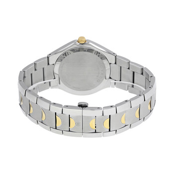 Silver-tone stainless steel case with a two-tone (silver-tone and yellow gold-tone) stainless steel with yellow gold-plated accents bracelet. Fixed yellow gold-plated stainless steel bezel. Black dial with yellow gold-tone dauphine-style hands and dot hour markers. Minute markers around the outer rim. Movado dot appears at the 12 o'clock position. Dial Type: Analog. Quartz movement. Scratch resistant sapphire crystal. Pull / push crown. Solid case back. Round case shape, case size: 40 mm, case thickness: 7.5 mm. Band width: 20 mm. Deployment clasp. Water resistant at 30 meters / 100 feet. Functions: hour, minute. Luno Sport Series. Dress watch style. Watch label: Swiss Made. Movado Luno Sport Black Dial Two-tone Men's Watch 0606906.