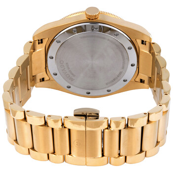 Yellow gold PVD stainless steel case and bracelet. Fixed yellow gold PVD bezel. Black dial with luminous yellow gold-tone hands and index hour markers. Minute markers. Arabic numeral minute markers (at 5 minute intervals) around the outer rim. The Movado dot appears at the 12 o'clock position. Dial Type: Analog. Luminescent hands and markers. Date display at the 3 o'clock position. Quartz movement. Scratch resistant sapphire crystal. Pull / push crown. Solid case back. Round case shape. Case size: 41 mm. Case thickness: 10 mm. Band width: 22 mm. Butterfly clasp. Water resistant at 30 meters / 100 feet. Functions: date, hour, minute, second. Sport Series. Casual watch style. Watch label: Swiss Made. Movado Sport Quartz Black Dial Men's Watch 0607436.