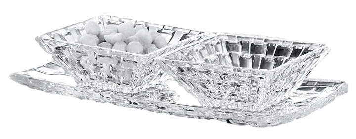 Nachtmann-ის სერვირების ნაკრები, Bossa Nova-ს სერიიდან, დამზადებულია მაღალი ხარისხის კრისტალური მინისგან, რაც მის ხანგრძლივ გამოყენებასა და გამძლეობას უზრუნველყოფს. ნაკრებში შედის 2 სერვირების თასი და 1 თეფში. დახვეწილი დიზაინი შესანიშნავად მოერგება თქვენს სუფრას. თეფში განკუთვნილია სხვადასხვა კერძებისა თუ დესერტების სერვირებისთვის.