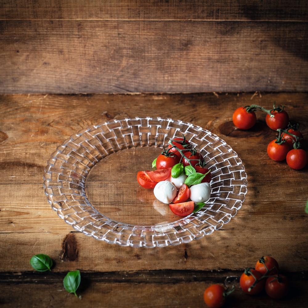 Nachtmann-ის 23 სმ დიამეტრის მრგვალი თეფში, BossaNova-ს სერიიდან, დამზადებულია მაღალი ხარისხის კრისტალური მინისგან, რაც მის ხანგრძლივ გამოყენებასა და გამძლეობას უზრუნველყოფს. ნაკრებში შედის ორი ცალი იდენტური თეფში. დახვეწილი დიზაინი შესანიშნავად მოერგება თქვენს სუფრას. თეფში განკუთვნილია სხვადასხვა კერძებისა თუ დესერტების სერვირებისთვის.