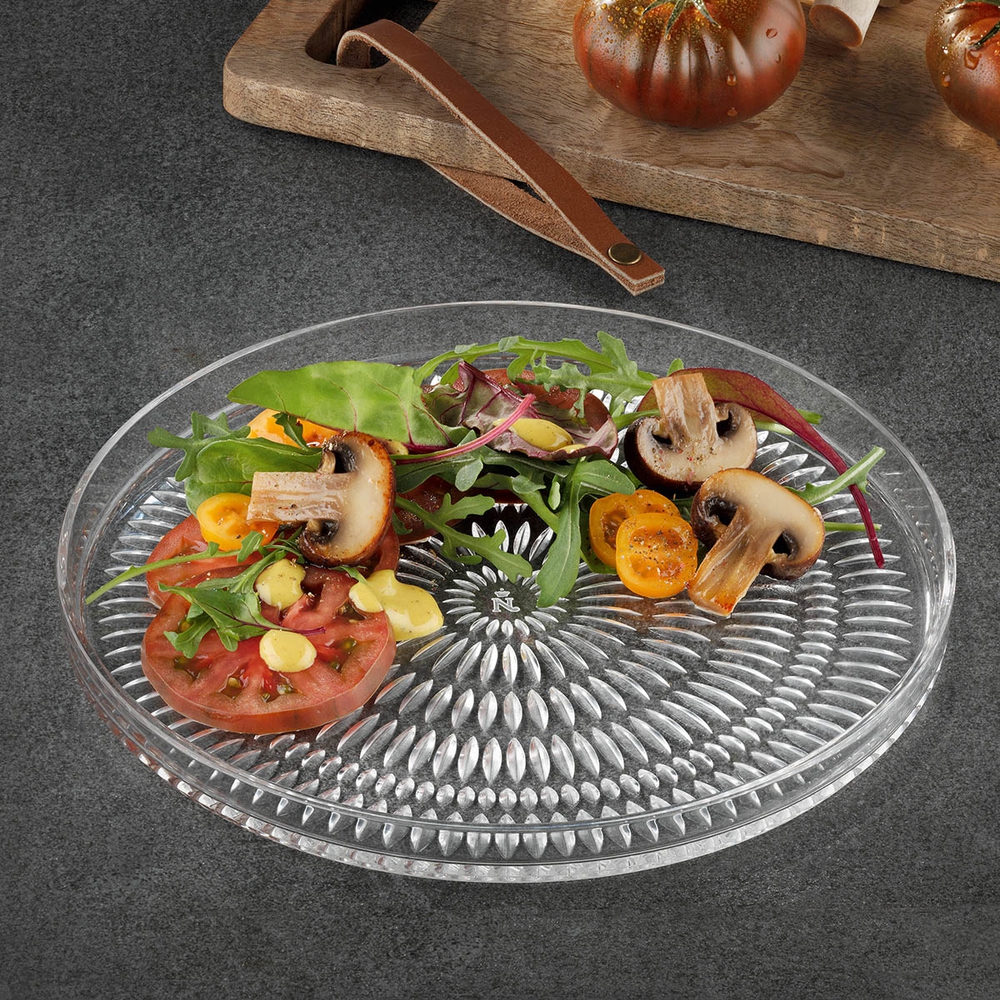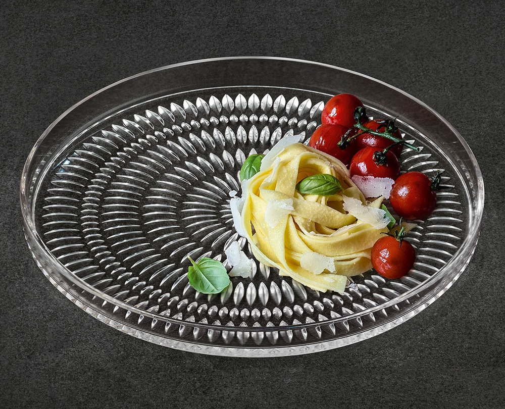 Nachtmann-ის 22 სმ დიამეტრის თეფში, Ethno-ს სერიიდან, დამზადებულია მაღალი ხარისხის კრისტალური მინისგან, რაც მის ხანგრძლივ გამოყენებასა და გამძლეობას უზრუნველყოფს. დახვეწილი დიზაინი შესანიშნავად მოერგება თქვენს სუფრას. თეფში განკუთვნილია სხვადასხვა კერძებისა თუ დესერტების სერვირებისთვის.