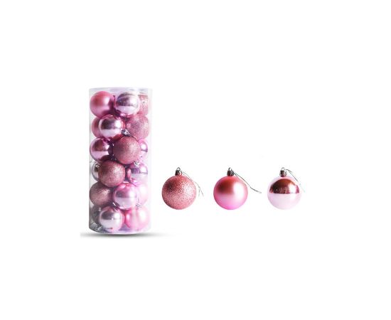ნაძვის ხის სათამაშო ბურთი 4სმ ღია ვარდისფერი 24 ცალი