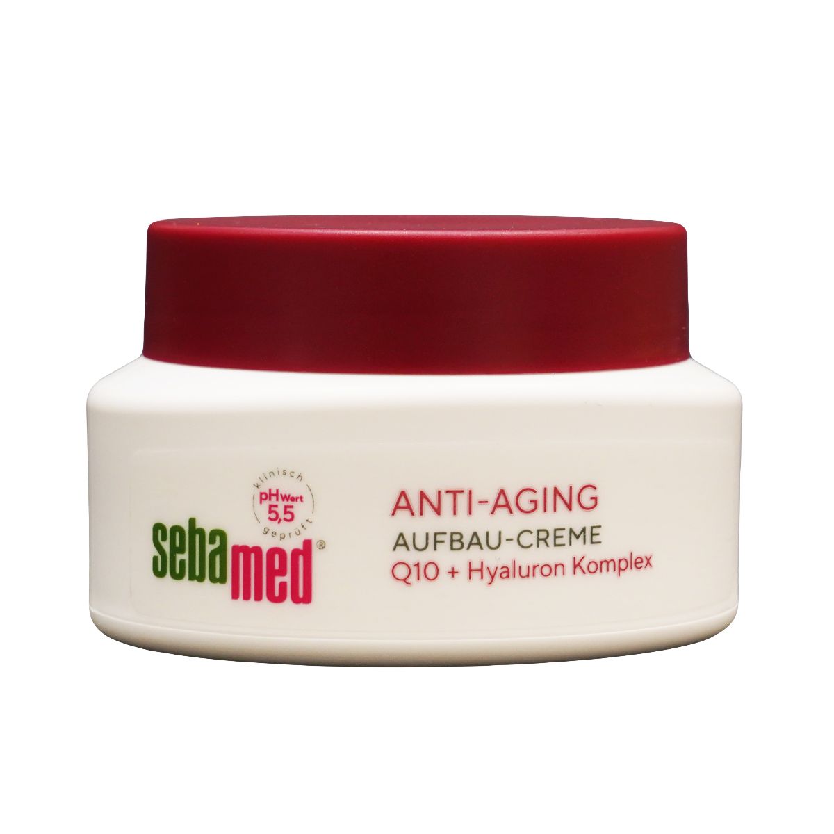 sebamed ANTI-AGING Aufbau-Creme >სახის კრემი სპეციალურად არის შექმნილი 30 წლის ასაკის ზემოთ არსებულ კანის საჭიროებებისთვის, იგი შეიცავს მოქმედ ინგრედიენტებს, რომლებიც რეგულარული გამოყენებისას უვლიან კანს და აუმჯობესებენ მის ელასტიკურობასა და სიბზინვარეს.