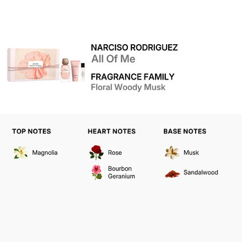 This luxurious gift set includes a 3.0 oz Eau de Parfum, a 1.7 oz body lotion, and a 10 ml travel spray—perfect for keeping your favorite scent close wherever you go. All Of Me opens with radiant floral notes, layered with soft musks and a hint of warmth, creating a beautifully balanced aroma that lingers gracefully throughout the day.