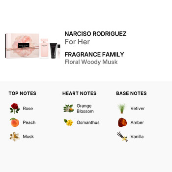 Presented by the renowned fashion house Narciso Rodriguez, this luxurious gift set includes a 100ml Eau de Parfum, a 50ml body lotion, and a 10ml travel-size Eau de Parfum—perfect for indulging in the scent wherever you go. Designed for the modern woman who appreciates elegance and refinement, For Her is a stunning addition to any fragrance collection.