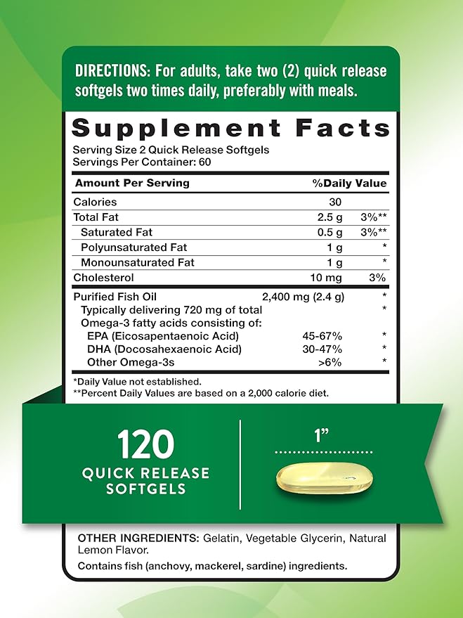 Nature's Truth - Fish Oil 2400mg- ის ძირითადი თვისებები და მახასიათებლები: