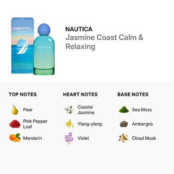 Packaged in a sleek 3.4 oz bottle, Nautica Jasmine Coast Calm & Relaxing is ideal for those seeking a fragrance that mirrors the calm and refreshing rhythm of the sea. Whether you're heading to the office or a weekend getaway, this Eau de Parfum balances freshness and tranquility, making it perfect for any occasion.