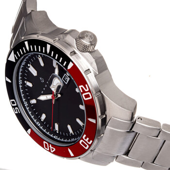 Band Color: Silver Stainless Steel; Band Width: 22mm near case; 20mm near clasp/buckle; Bezel Color: Multicolor; Case: Silver + Circle-Shaped; Case Finish: Brushed + Stainless Steel; Case Thickness: 14mm; Case Width: 45mm; 50mm with Crown; Clasp / Buckle: Fold Over Push Button Deployment; Dial: Black + Analog; Hand Color: Silver; Movement: Japanese + Quartz; Time Zones: Single; Water Resistance: 20 ATM. Silver-tone stainless steel case and bracelet. Uni-directional rotating multi-color stainless steel bezel. Black dial with silver-tone hands and index hour markers. Minute markers around the outer rim. Dial Type: Analog. Luminescent hands and markers. Date display at the 3 o'clock position. Quartz movement. Scratch resistant mineral crystal. Pull / push crown. Solid case back. Round case shape, case size: 45 mm, case thickness: 14 mm. Band width: 22 mm, band length: 9.25 inches. Deployment with push button release clasp. Water resistant at 200 meters / 660 feet. Functions: date, hour, minute, second. Admiralty Pro 200 Series. Casual watch style. Watch label: Japan Movt. Nautis Admiralty Pro 200 Quartz Black Dial Men's Watch GL2008-C.