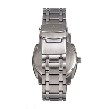 Stainless steel case with a stainless steel bracelet. Fixed stainless steel bezel. Black dial with silver-tone hands and index-Arabic numeral hour markers. Arabic numeral markers at the 6, 9 and 12 o'clock positions. Minute markers around the outer rim. Dial Type: Analog. Luminescent hands and markers. Day of the week and date display at the 3 o'clock position. Quartz movement. Scratch resistant mineral crystal. Pull / push crown. Solid case back. Cushion case shape. Case size: 45 mm. Case thickness: 15 mm. Band width: 24 mm. Band length: 9 inches. Deployment clasp with a push button release. Water resistant at 200 meters / 660 feet. Functions: date, day, hour, minute, second. Stealth Series. Casual watch style. Nautis Stealth Quartz Black Dial Men's Watch GL2087-B.