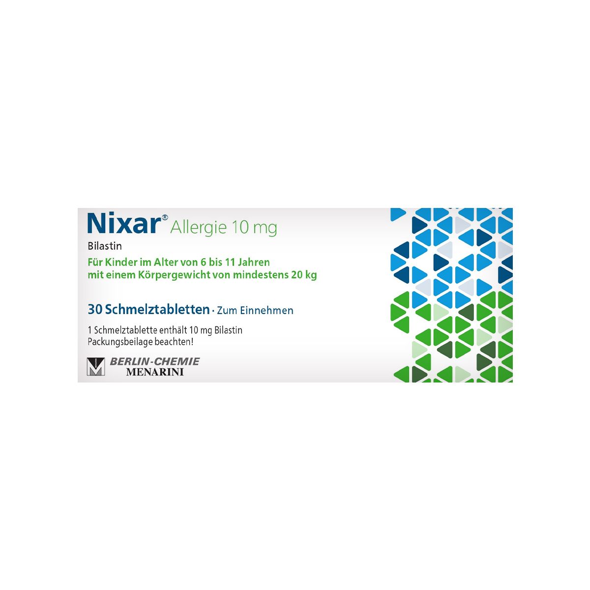 ნიქსარი ალერგია 10 მგ პირის ღრუში ხსნადი ტაბლეტები ნაჩვენებია 6-დან 11 წლამდე ასაკის, არანაკლებ 20 კგ სხეულის მასის მქონე ბავშვების სამკურნალოდ.