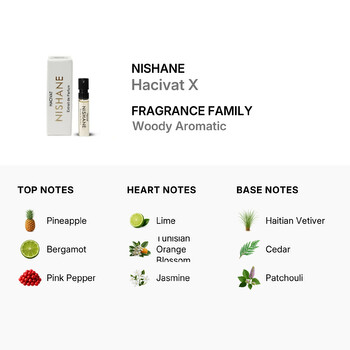 Hacivat X belongs to the Woody Aromatic fragrance family, offering a refreshing and refined experience. It opens with a bright burst of pineapple, bergamot, and pink pepper, creating a vibrant and cheerful first impression. The heart reveals a zesty mix of lime, Tunisian orange blossom, and jasmine, blending citrus and floral tones for a radiant middle layer. Finally, the scent settles into a rich base of Haitian vetiver, cedar, and patchouli, leaving a warm and lasting trail that speaks of timeless style.