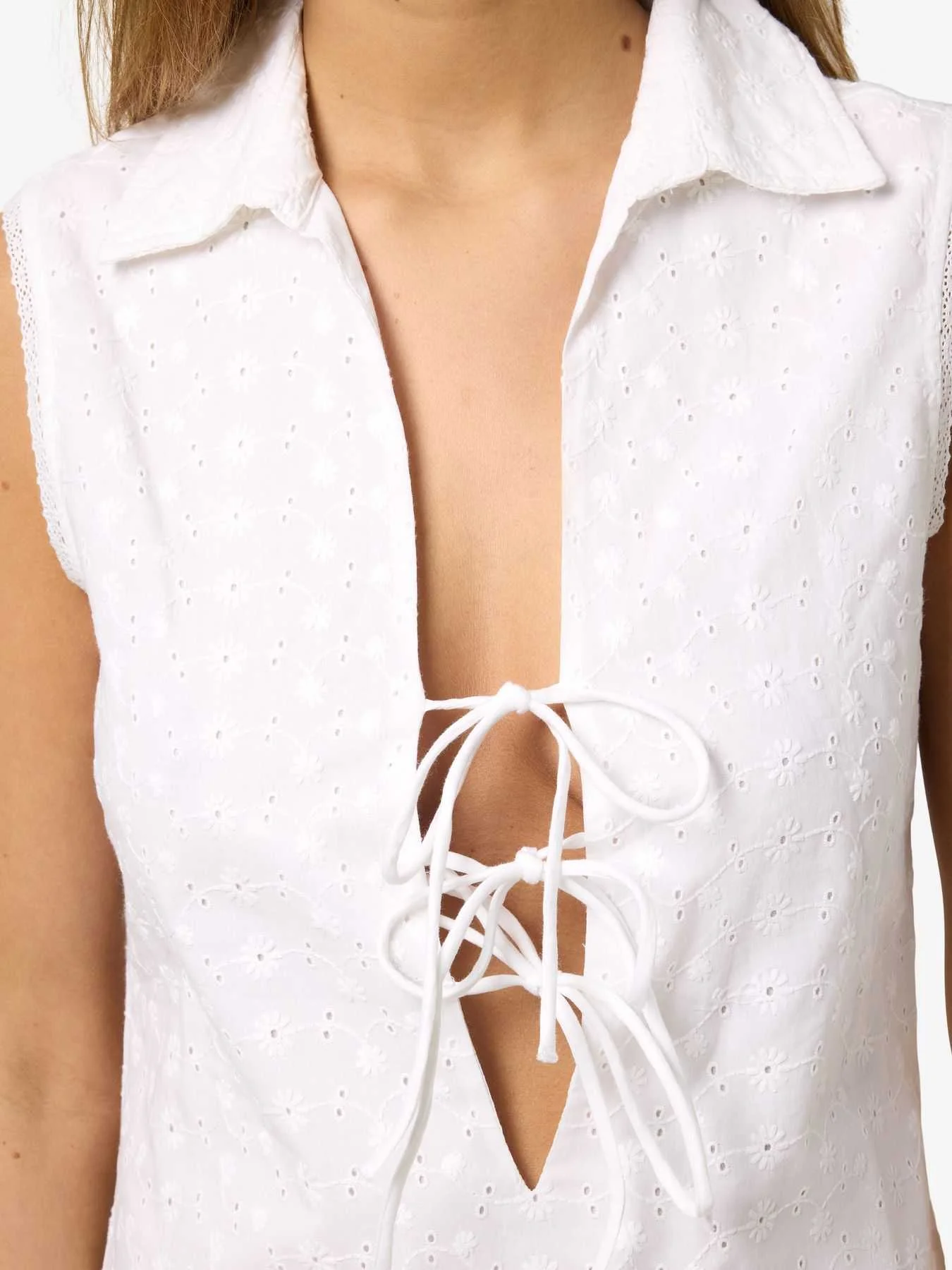 კაბა Noisy May - NMSOMMER S/L SHORT BRODERIE DRESS WVN