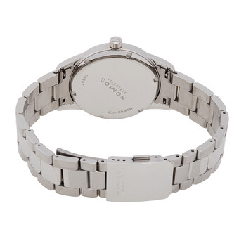Silver-tone stainless steel case and bracelet. Fixed silver-tone stainless steel bezel. Polar blue dial with silver-tone hands and index-Arabic numeral hour markers. Dial Type: Analog. Luminescent hands and markers. One-small second subdials. Nomos Calibre DUW 3001 Automatic movement, containing 27 Jewels, bitting at 21600 vph, and has a power reserve of approximately 42 hours. Scratch resistant sapphire crystal. Screw down crown. Solid case back. Round case shape, case size: 37 mm, case thickness: 8.3 mm. Band width: 18 mm. Fold over clasp with a safety release. Water resistant at 200 meters / 660 feet. Functions: hour, minute, second. Club Sport Series. Sport watch style. Watch label: Made in Germany. Nomos Club Sport Automatic Men's Watch 747.