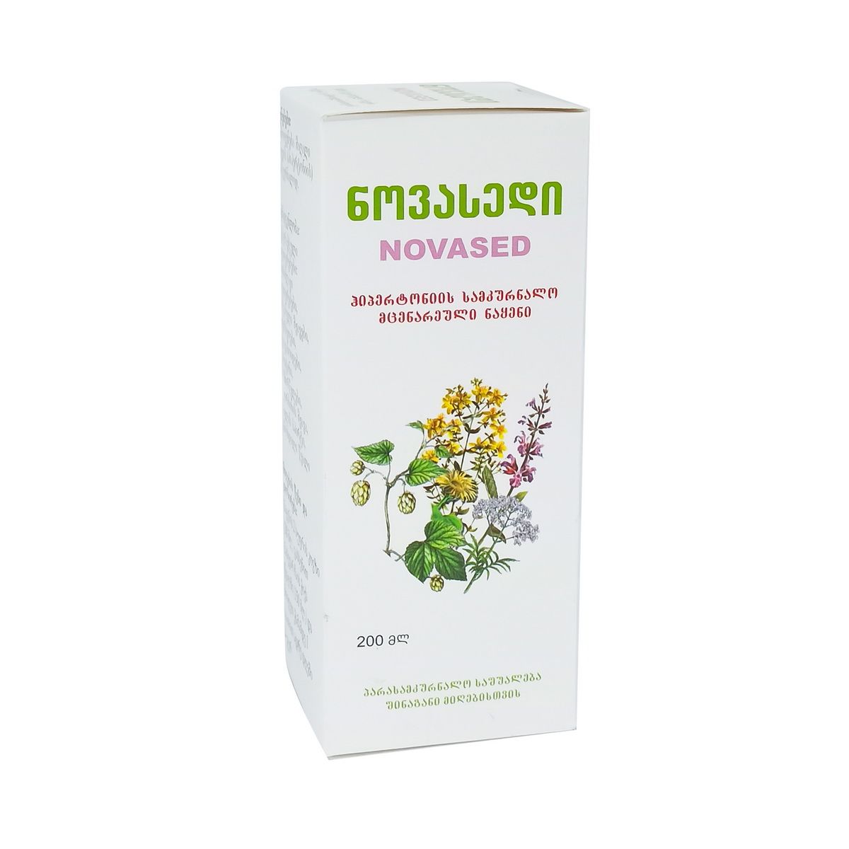ნოვასედი წარმოადგენს 100% ნატურალურ მცენარეულ ნაყენს (პარასამკურნალო საშუალებას), რომელიც მოწოდებულია მაღალი წნევის, ჰიპერტონიის სამკურნალოდ; მასში შემავალი სხვადასხვა სახის სამკურნალო მცენარეთა წვენები მოქმედებს სპაზმოლიტურად, ეფექტურად აწესრიგებს გულ-სისხლძარღვთა სისტემის ფუნქციონირებას, ახდენს წნევის ნორმალიზებას, გამოჰყავს ორგანიზმიდან პურინები და სხვა მავნე ტოქსინები , არეგულირებს ორგანიზმში ნივთიერებათა ცვლას , გააჩნია მსუბუქი შარდმდენი, ნაღველმდენი მოქმედება.