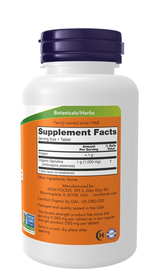 სპირულინა არის ლურჯ-მწვანე მიკროწყალმცენარე, რომელიც შეიცავს ბუნებრივად წარმოქმნილ საკვებ ნივთიერებებს, როგორიცაა ვიტამინები, მინერალები და GLA (გამა-ლინოლენის მჟავა). Now-ის სპირულინა გთავაზობთ ნატურალურ საკვებ პროდუქტებში არსებულ ბუნებრივ საკვებ ნივთიერებების პროფილს. ეს ორმაგი კონცენტრაციის პროდუქტი შეიცავს ორჯერ მეტ სპირულინას (1000 მგ თითო ტაბლეტში), ვიდრე ჩვენი ჩვეულებრივი კონცენტრაციის პროდუქტი (500 მგ თითო ტაბლეტში).