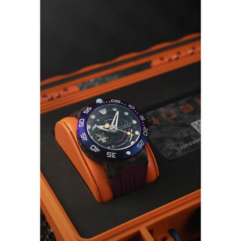 Introducing the new iteration of the Opportunity Automatic. Featuring the similar build of the original Opportunity with automatic movement and a 48mm case, this exquisite timepiece carries a dial made from carbon fibre, which gives a unique and mesmerizing look. Only 500 pieces are available. Black composite case with a purple silicone strap. Uni-directional rotating purple stainless steel bezel. Black dial with silver-tone hands and index hour markers. Dial Type: Analog. Luminescent hands and markers. Seiko - NH38 automatic movement. Scratch resistant sapphire crystal. Screw down crown. Transparent case back. Round case shape, case size: 48 mm, case thickness: 17.9 mm. Band width: 20 mm, band length: 8 inches. Water resistant at 300 meters / 1000 feet. Functions: hour, minute, second. Opportunity Series. Casual watch style. Nubeo Opportunity Black Dial Men's Watch NB-6085-05.