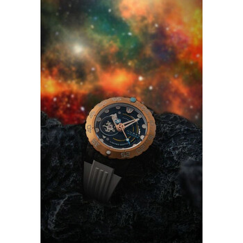 Introducing the new iteration of the Opportunity Automatic. Featuring the similar build of the original Opportunity with automatic movement and a 48mm case, this exquisite timepiece carries a dial made from carbon fibre, which gives a unique and mesmerizing look. Only 500 pieces are available. Black composite case with a white silicone strap. Uni-directional rotating rose gold-tone stainless steel bezel. Black dial with rose gold-tone hands and index hour markers. Dial Type: Analog. Luminescent hands and markers. Seiko - NH38 automatic movement. Scratch resistant sapphire crystal. Screw down crown. Transparent case back. Round case shape, case size: 48 mm, case thickness: 17.9 mm. Band width: 20 mm, band length: 8 inches. Water resistant at 300 meters / 1000 feet. Functions: hour, minute, second. Opportunity Series. Casual watch style. Nubeo Opportunity Black Dial Men's Watch NB-6085-06.