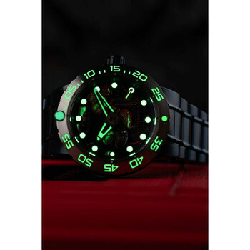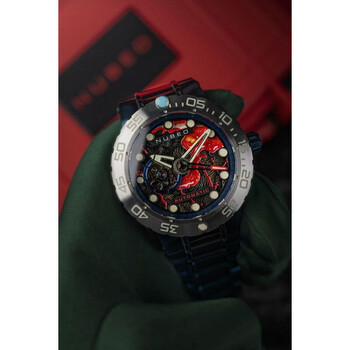 Nubeo's Opportunity Automatic is back with a new dial design that simulates the mesmerizing flow of lava. Similar to the first generation, this limited edition of 500 pieces also includes a piece of Martian stone on its caseback - a truly unique timepiece that celebrates and commemorates the extraordinary effort in unveiling the natural history of Mars. Black stainless steel case with a blue stainless steel bracelet. Uni-directional rotating silver-tone stainless steel bezel. Black dial with silver-tone hands and index hour markers. Dial Type: Analog. Luminescent hands and markers. Seiko - NH38 automatic movement. Scratch resistant sapphire crystal. Screw down crown. Transparent case back. Round case shape, case size: 48 mm, case thickness: 18 mm. Band width: 28 mm, band length: 8 inches. Water resistant at 300 meters / 1000 feet. Functions: hour, minute, second. Opportunity Series. Casual watch style. Nubeo Opportunity Black Dial Men's Watch NB-6086-22.