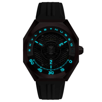 A new iteration from our Skylab collection, the Skylab Automatic is a limited edition timepiece that challenges the boundaries of horology. Keeping the same elegantly crafted hexagonal pattern on the dial, it also features a Japanese automatic movement and two hands for an accurate and reliable timekeeping experience. It also comes with an additional rubber strap for extra versatility. Brown stainless steel case with a grey rubber strap. Fixed brown stainless steel bezel. Black dial with black hands and index hour markers. Minute markers around the outer rim. Dial Type: Analog. M-MIY-9039.2H automatic movement. Scratch resistant sapphire crystal. Screw down crown. Solid case back. Round case shape, case size: 48 mm, case thickness: 19 mm. Band width: 26 mm, band length: 8 inches. Water resistant at 100 meters / 330 feet. Functions: hour, minute, second. Skylab Series. Casual watch style. Nubeo Skylab Automatic Black Dial Men's Watch NB-6083-0E.