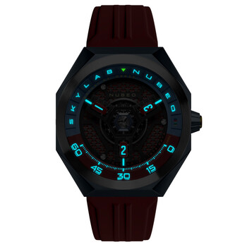 A new iteration from our Skylab collection, the Skylab Automatic is a limited edition timepiece that challenges the boundaries of horology. Keeping the same elegantly crafted hexagonal pattern on the dial, it also features a Japanese automatic movement and two hands for an accurate and reliable timekeeping experience. It also comes with an additional rubber strap for extra versatility. Blue stainless steel case with a red rubber strap. Fixed silver-tone stainless steel bezel. Red dial with black hands and index hour markers. Dial Type: Analog. M-MIY-9039.2H automatic movement. Scratch resistant sapphire crystal. Screw down crown. Solid case back. Round case shape, case size: 48 mm, case thickness: 19 mm. Band width: 26 mm, band length: 8 inches. Water resistant at 100 meters / 330 feet. Functions: hour, minute, second. Skylab Series. Casual watch style. Nubeo Skylab Automatic Red Dial Men's Watch NB-6083-0F.