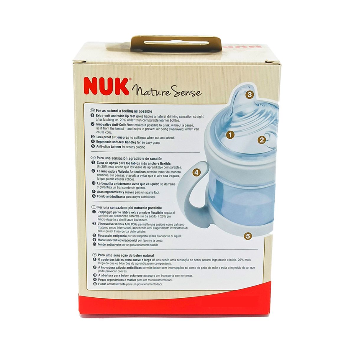 ნუკი NUK ნატურ სენსი ერგონომიული სახელურებით. ბოთლი პოლიპროპილენის ტემპერატურული კონტროლის ინდიკატორით + საწოვარა სილიკონის.