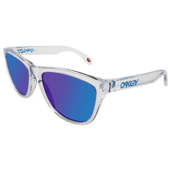 Oakley Sunglasses. Series Frogskins. Series number: OO9013. Color code: 9013D0. Shape: Square. Lens Width: 55 mm. Lens Height: 44 mm. Lens Bridge: 17 mm. Arm Length: 139 mm. 100% UV protection. Non-Polarized. Frame Material: Plastic. Frame Color: Crystal Clear. Lenses Type: Prizm Sapphire. Rim Style: Full-Rim. UPC/EAN code: 888392327024. Oakley Frogskins Prizm Sapphire Square Unisex Sunglasses OO9013 9013D0 55.