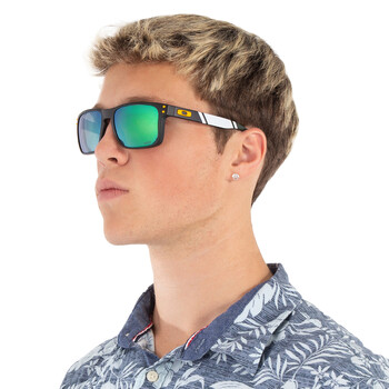 Oakley Sunglasses. Series Holbrook Green Bay Packers. Series number: 0OO9102. Color code: 9102R3. Shape: Square. Lens Width: 55 mm. Lens Bridge: 18 mm. Arm Length: 137 mm. 100% UV protection. Non-Polarized. Frame Material: Plastic. Frame Color: GB Matte Black. Lenses Type: Prizm Jade. Rim Style: Full-Rim. UPC/EAN code: 888392538796. Oakley Holbrook Green Bay Packers Prizm Jade Square Men's Sunglasses OO9102 9102R3 55.
