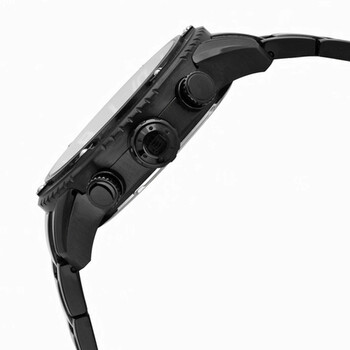 Black stainless steel case and bracelet. Fixed black stainless steel bezel. Black dial with silver-tone hands and index hour markers. Dial Type: Analog. Date display at the 4 o'clock position. Quartz movement. Scratch resistant mineral crystal. Round case shape, case size: 45 mm. Band width: 22 mm. Deployment with push button release clasp. Water resistant at 100 meters / 330 feet. Functions: chronograph, date, hour, minute, second. Impulse Series. Fashion watch style. Oceanaut Impulse Chronograph Quartz Black Dial Men's Watch OC3124.