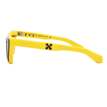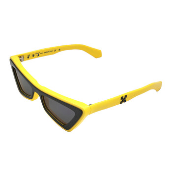 Off-White Sunglasses. Series Artemisia. Series number: OERI042. Color code: 1807. Shape: Cat Eye. Lens Width: 55 mm. Lens Bridge: 18 mm. Arm Length: 145 mm. 100% UV protection. Non-Polarized. Frame Material: Acetate. Frame Color: Black/Yellow. Lenses Type: Dark Grey. Rim Style: Full-Rim. UPC/EAN code: 8052865854559. Off-White Artemisia Dark Grey Cat Eye Ladies Sunglasses OERI042 1807 55.