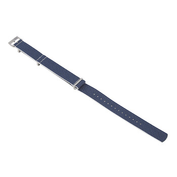 Blue/white NATO band. Band width: 20 mm. Tang clasp. Omega 20 mm Blue/White NATO Watch Band O031CWZ005945.