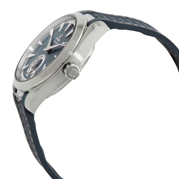 Stainless steel case with a blue rubber strap. Fixed stainless steel bezel. Blue dial with luminous silver-tone hands and index hour markers. Arabic numeral minute markers (at 5 minute intervals). Minute markers around the outer rim. Dial Type: Analog. Luminescent hands and markers. Date display at the 6 o'clock position. One subdial displaying: small seconds. Omega calibre 8916 automatic movement, containing 39 Jewels, bitting at 25200 vph, and has a power reserve of approximately 60 hours. Scratch resistant sapphire crystal. Screw down crown. Transparent case back. Round case shape. Case size: 41 mm. Band width: 20 mm. Foldover clasp. Water resistant at 150 meters / 500 feet. Functions: date, hour, minute, small second, co-axial escapement, chronometer. Aqua Terra Series. Casual watch style. Watch label: Swiss Made. Omega Aqua Terra Automatic Blue Dial Men's Watch 220.12.41.21.03.005.