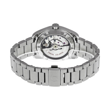 Stainless steel case with a stainless steel bracelet. Fixed stainless steel bezel. Blue dial with silver-tone hands and stick hour markers. Minute markers around the outer rim. Dial Type: Analog. Luminescent hands and markers. Date display appears at the 3 o'clock position. Automatic movement with a 60-hour power reserve. Scratch resistant sapphire crystal. Screw down crown. Skeleton case back. Case diameter: 38.5 mm. Round case shape. Deployment clasp with push button release. Water resistant at 150 meters / 500 feet. Functions: date, hour, minute, second. Luxury watch style. Watch label: Swiss Made. Item Variations: 231 10 39 21 03 001, 231-10-39-21-03-001, 231/10/39/21/03/001, 23110392103001. Omega Aqua Terra Automatic Blue Dial Stainless Steel Men's Watch 231.10.39.21.03.001.