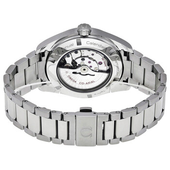 Stainless steel case with a stainless steel bracelet. Fixed stainless steel bezel. Silver dial with luminous 18kt rose gold hands and index hour markers. Minute markers around the outer rim. Dial Type: Analog. Luminescent hands and markers. Date display at the 3 o'clock position. Automatic movement with a 55 hour power reserve. Scratch resistant sapphire crystal. Screw down crown. Transparent case back. Case diameter: 43 mm. Case thickness: 15.5 mm. Round case shape. Band width: 24 mm. Fold over clasp with push button release. Water resistant at 150 meters / 500 feet. Functions: month, date, hour, minute. Luxury watch style. Watch label: Swiss Made. Item Variations: 231 10 43 22 02 003, 231-10-43-22-02-003, 231/10/43/22/02/003, 23110432202003. Omega Aqua Terra Co-Axial Annual Calendar Automatic Silver Dial Stainless Steel Men's Watch 231.10.43.22.02.003.